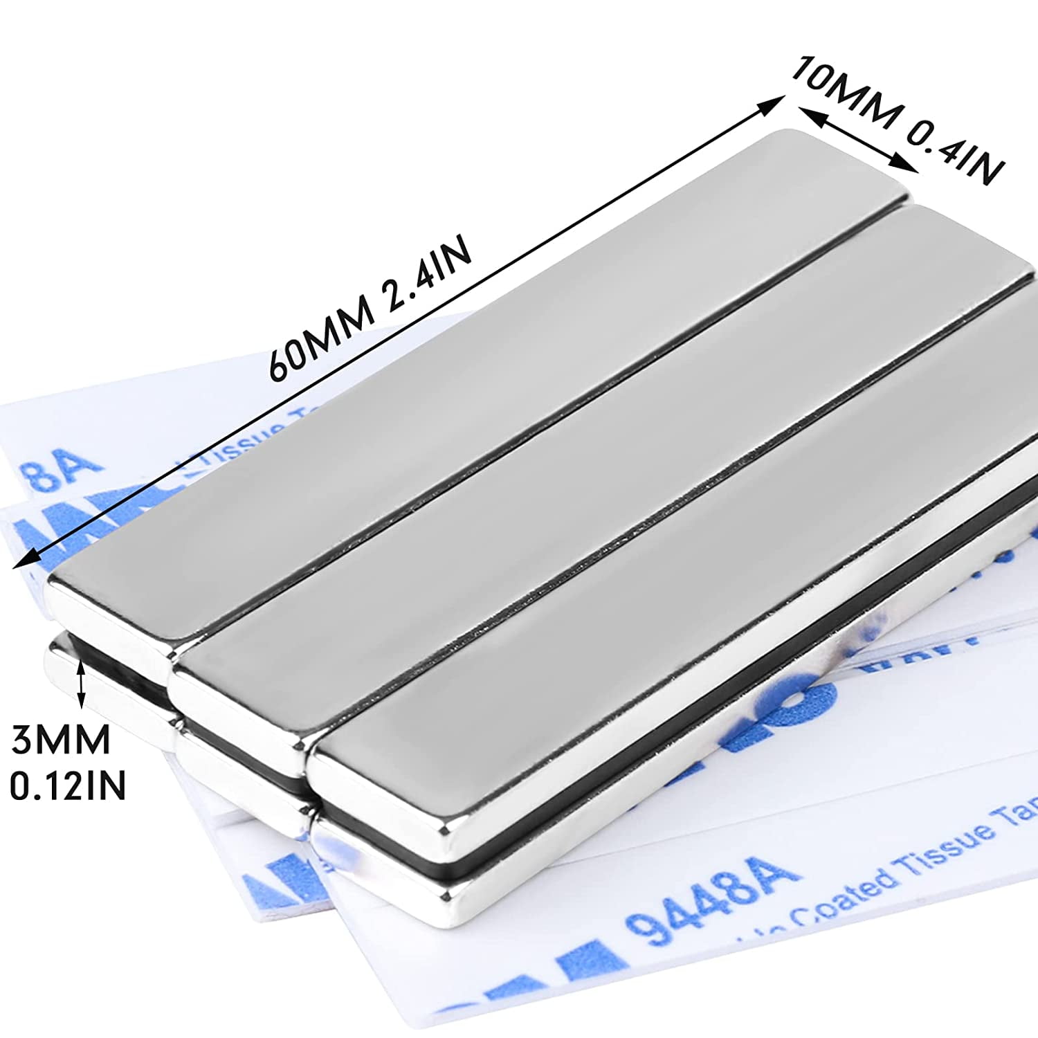 Diymag Strong Neodymium Bar Magnets Powerful Rare Earth Neodymium Magnets With Double Sided Adhesive Perfect For Fridge Garage Kitchen Craft Office Etc 60 X 10 X 3 Mm Pack Of 12 Walmart Com